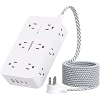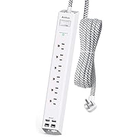 Power Strip Surge Protector, HANYCONY 12 Multiple Outlets 4 USB Ports (2 USB C), 5Ft Braided Extension Cord Flat Plug, Overload Surge Protection, Desk for Office Home College Dorm Room Essentials