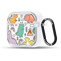 MOSNOVO Case for Airpods 4, Protective Clear Case with Shockproof Dual Layer Hard Luxe Metal Ring Designed for Airpods 4 Generation - Dinosaur Land