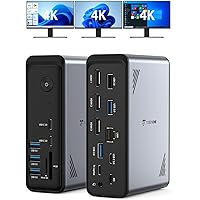 TobenONE 18 in 1 Laptop Docking Station 3 Monitors, Triple 4K Display with 3 HDMI, 9 USB Ports, Gigabit Ethernet, PD3.0, for Windows/Dell/Lenovo/HP/Thinkpad Laptops (No Power Adapter)