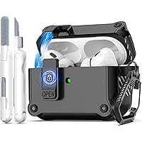 R-fun Compatible with AirPods Pro 2nd Generation 2023(USB-C),2022(Lightning Cable),1st Gen 2019 Charging Case, Full Drop Protection Auto Pop-Up Lid Design with Cleaner Kit,Black
