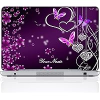 Custom Design Personalized Laptop Skin Sticker Cover Art Decal, Customize Size & Text (15.6 Inch, Purple Hearts Butterflies)