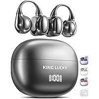 King Lucky Clip-On Earbuds Gen 3, Open-Ear Wireless Bluetooth 6.0 Headphones with Mic, Secure Fit for Small Ears & Glasses Wearers, 50H Playtime, LED Digital Display, ENC, IPX5 Waterproof(Balck)