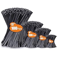 Zip Ties Assorted Sizes(4”+6”+8”+12”), 400 Pack, Black Cable Ties, UV Resistant Wire Ties by ANOSON